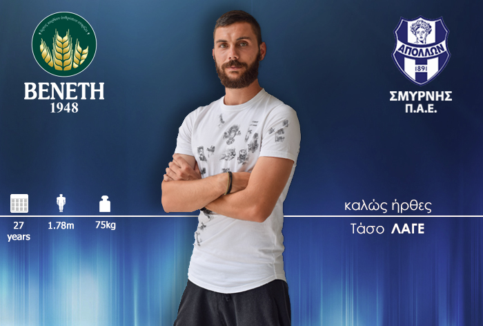 «Η ΠΑΕ Απόλλων Σμύρνης ανακοινώνει την απόκτηση του ποδοσφαιριστή, Τάσου Λαγού. Γεννημένος στις 12/4/1992, έχει ύψος 1.78μ. και αγωνίζεται ως αμυντικός μέσος.
