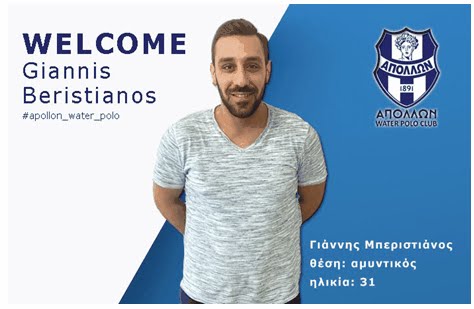 Τον Γιάννη Μπεριστιάνο ανακοίνωσε το τμήμα υδατοσφαίρισης του Απόλλωνα!