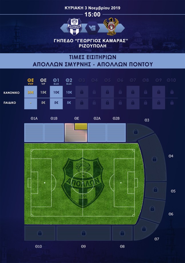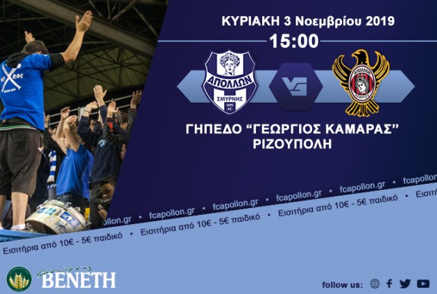«Για τη διευκόλυνση όσων θέλουν να παρακολουθήσουν τον εντός έδρας αγώνα της ομάδας μας με αντίπαλο τον Απόλλων Πόντου (Κυριακή, 03/11/2019, 15:00) για την 3η αγωνιστική ημέρα, του πρωταθλήματος της Super League 2, στο γήπεδο «Γεώργιος Καμάρας», η ΠΑΕ Απόλλων Σμύρνης ενημερώνει: