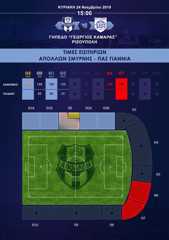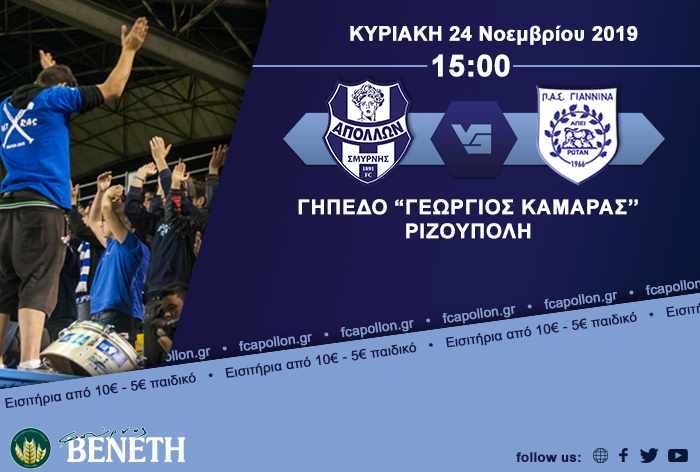 «Για τη διευκόλυνση όσων θέλουν να παρακολουθήσουν τον εντός έδρας αγώνα της ομάδας μας με αντίπαλο τον ΠΑΣ Γιάννινα (Κυριακή, 24/11/2019, 15:00) για την 6η αγωνιστική ημέρα, του πρωταθλήματος της Super League 2, στο γήπεδο «Γεώργιος Καμάρας», η ΠΑΕ Απόλλων Σμύρνης ενημερώνει:
