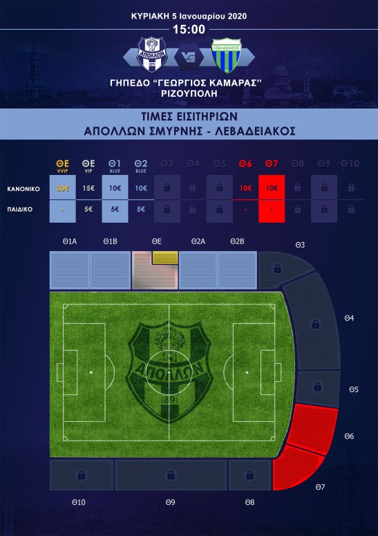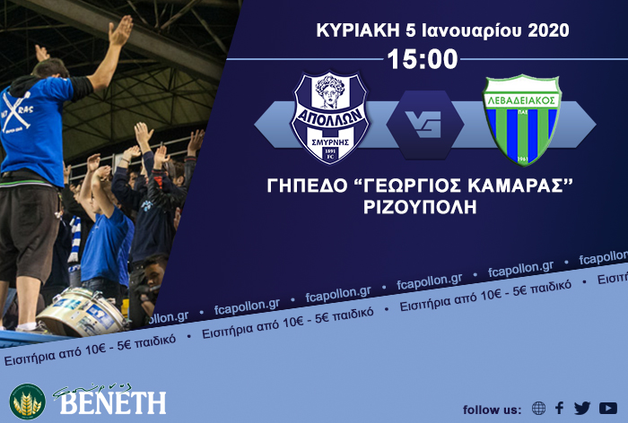 «Για τη διευκόλυνση όσων θέλουν να παρακολουθήσουν τον εντός έδρας αγώνα της ομάδας μας με αντίπαλο τον Λεβαδειακό (Κυριακή, 05/01/2020, 15:00) για την 11η αγωνιστική ημέρα, του πρωταθλήματος της Super League 2, στο γήπεδο «Γεώργιος Καμάρας», η ΠΑΕ Απόλλων Σμύρνης ενημερώνει: