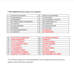 *Σημείωση: Σε περίπτωση που η Ε.Ο.Κ, λόγω της αναδιάρθρωσης των δικών της Πρωταθλημάτων ζητήσει την άνοδο και άλλης ομάδας από την Ένωση μας, θα υπάρξει άνοδος της επόμενης ομάδας που προκύπτει από την επικύρωση της βαθμολογικής κατάταξης των Πρωταθλημάτων μας.»