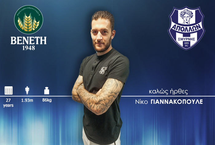 «Η ΠΑΕ Απόλλων Σμύρνης ανακοινώνει την απόκτηση του ποδοσφαιριστή, Νίκου Γιαννακόπουλου. Γεννημένος στις 19 Φεβρουαρίου 1993, αγωνίζεται ως τερματοφύλακας. Στο παρελθόν έχει παίξει σε Παναιτωλικό, Κερκυρα, Παναθηναϊκό, Άρη Λεμεσού, Πανιώνιο. Επίσης στα τμήματα υποδομής των Ουντινέζε, Αστέρα Τρίπολης και Μπλάκμπερν ενώ υπήρξε διεθνής με τις Εθνικές Ελλάδας U17 και U19.»