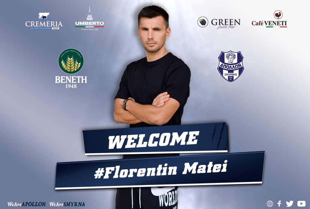 «Η ΠΑΕ Απόλλων Σμύρνης ανακοινώνει την απόκτηση του ποδοσφαιριστή Φλορεντίν Ματέι. Γεννημένος στις 15 Απριλίου 1993, στη Ρουμανία αγωνίζεται ως μεσοεπιθετικός. Στο παρελθόν έχει παίξει σε Απόλλωνα Λεμεσού, Άστρα Τζιούρτζιου, Στεάουα Βουκουρεστίου, Ιτιχάντ Κάλμπα, Ριέκα, Βόλιν Λουτσκ, Τσεζένα, Ουνίρεα Ουρζιτσένι.»