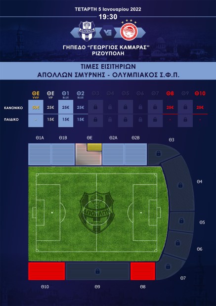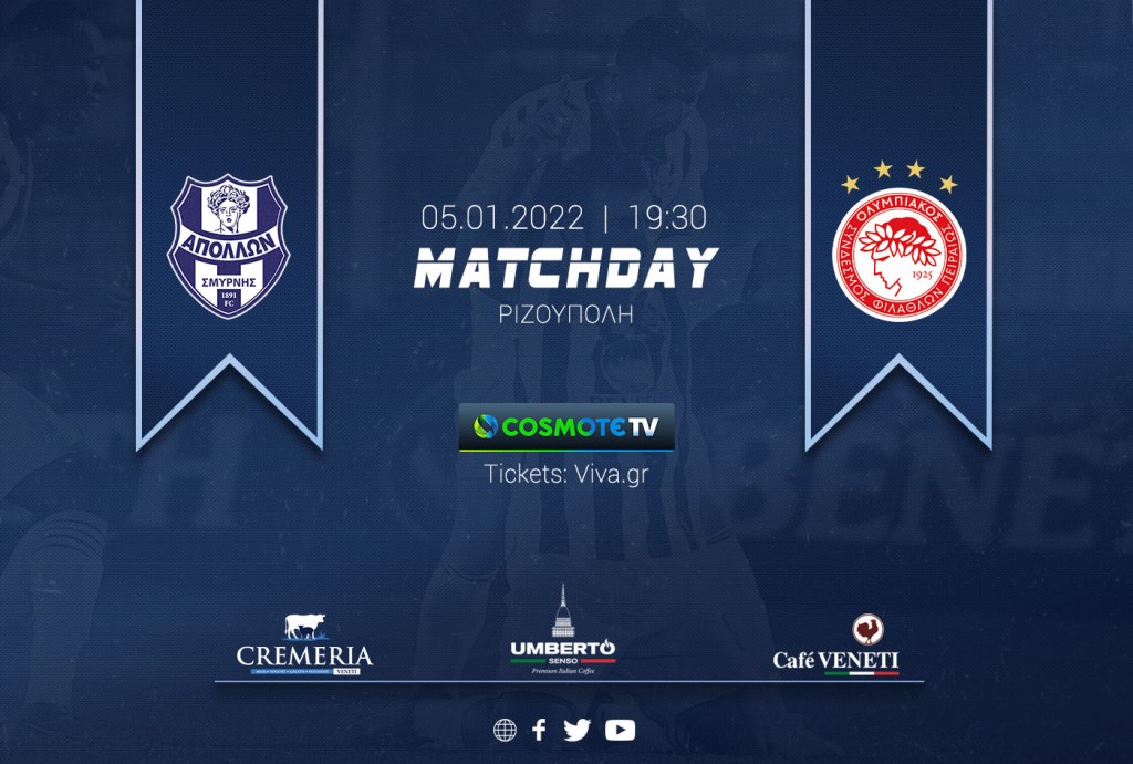«Για τη διευκόλυνση όσων θέλουν να παρακολουθήσουν τον εντός έδρας αγώνα της ομάδας μας με αντίπαλο τον Ολυμπιακό (Τετάρτη, 05/01/2022, 19:30) για τη 16η αγωνιστική ημέρα του πρωταθλήματος της Super League Interwetten, στο γήπεδο «Γεώργιος Καμάρας», η ΠΑΕ Απόλλων Σμύρνης ενημερώνει: