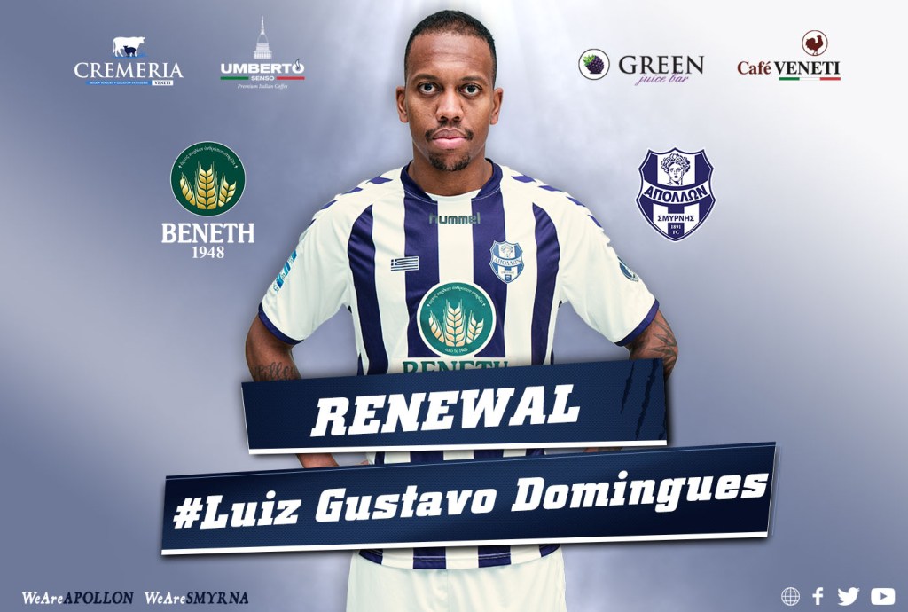 «Η ΠΑΕ Απόλλων Σμύρνης ανακοινώνει την ανανέωση της συνεργασίας με τον ποδοσφαιριστή Λουίζ Γκουστάβο Ντομίνγκες (Luiz Gustavo Domingues). Γεννημένος στις 28 Σεπτεμβρίου 1988, στη Βραζιλία, αγωνίζεται ως αμυντικός. Στην ομάδα μας εντάχθηκε το καλοκαίρι του 2020.»