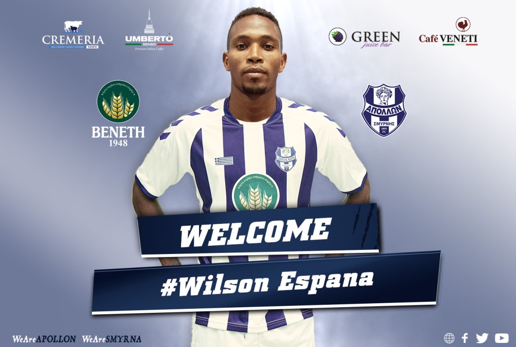 «Η ΠΑΕ Απόλλων Σμύρνης ανακοινώνει την απόκτηση του ποδοσφαιριστή Γουίλσον Εσπάνια. Γεννημένος στην Κολομβία, στις 16 Δεκεμβρίου 1997, αγωνίζεται ως σέντερ φορ. Πέρυσι έπαιξε στην πατρίδα του, στη Ρεάλ Καρταχένα (23 ματς, 6 γκολ). Στο παρελθόν αγωνίστηκε σε Ντεπόρτες Κιντίο και Μπόκα Τζούνιορς ντε Κάλι.