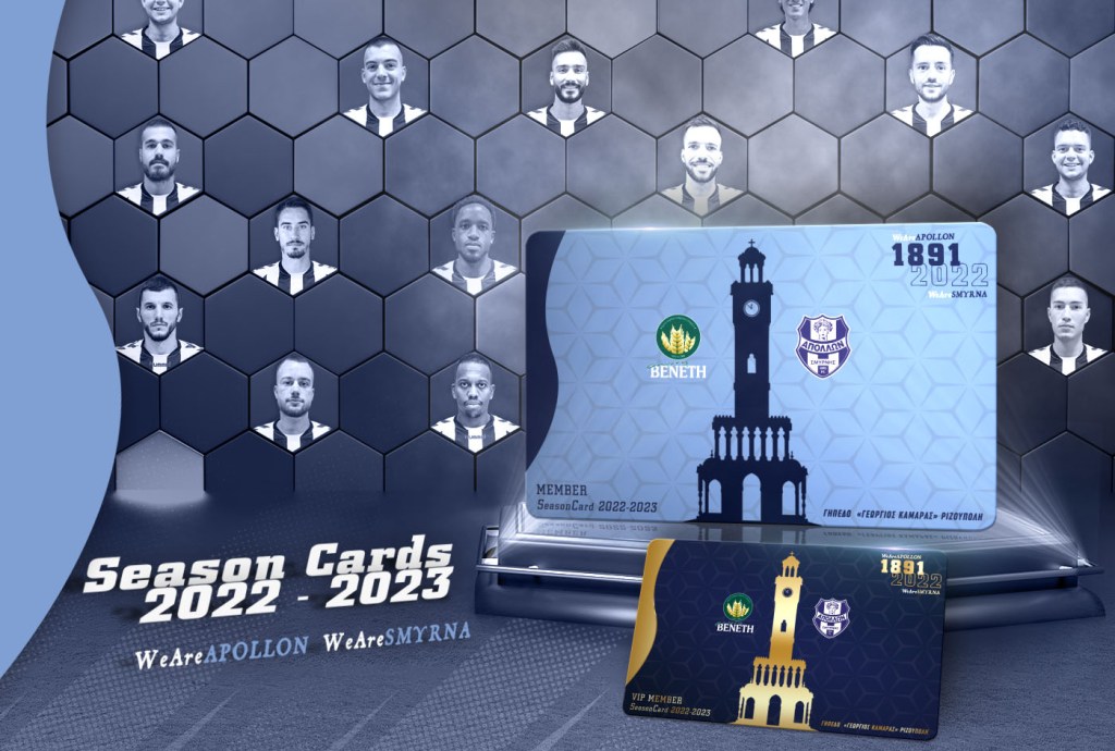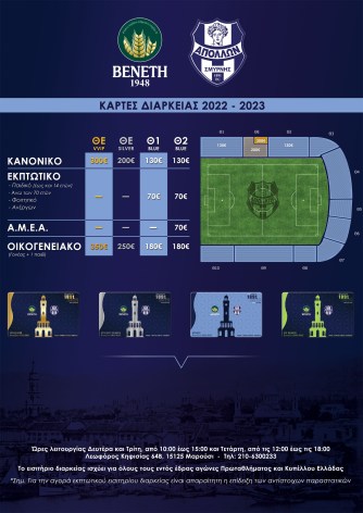«Η «σέντρα» για τη νέα αγωνιστική περίοδο πλησιάζει και η ώρα να πάρεις τη θέση σου στο πλευρό του Απόλλωνα Σμύρνης έφτασε. Αρχίζει η διάθεση των εισιτηρίων διαρκείας για τους εντός έδρας αγώνες της ομάδας μας.