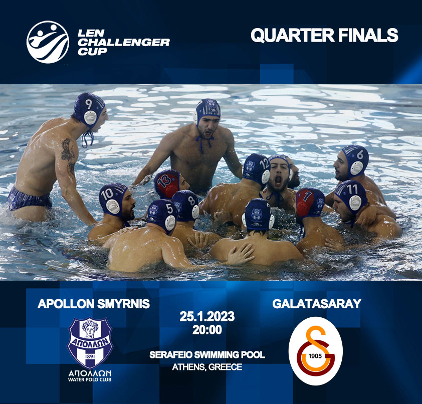 Εκείνη την ημέρα το Σεράφειο κολυμβητήριο θα «φορέσει» τα γιορτινά του για να φιλοξενήσει τον πρώτο Προημιτελικό του Απόλλωνα Σμύρνης με τη Γαλατασαράι για τη νεοσύστατη διοργάνωση του Challenger Cup.
