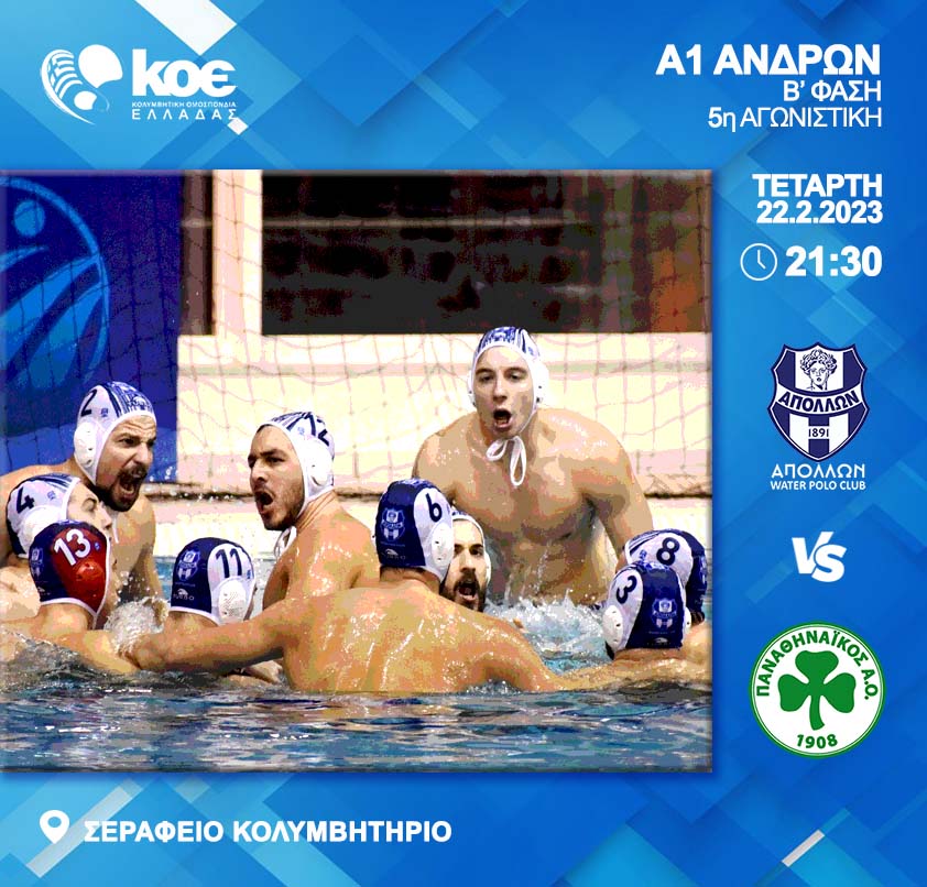 «Την απόλυτη προσοχή του στο ελληνικό πρωτάθλημα στρέφει ο ΓΣ Απόλλων Σμύρνης, που αύριο (22/12) υποδέχεται στις 21:30 στο Σεράφειο κολυμβητήριο τον Παναθηναϊκό στο πλαίσιο της 5ης αγωνιστικής του 1ου Γκρουπ στη Β’ Φάση της Α1 Υδατοσφαίρισης των Ανδρών.