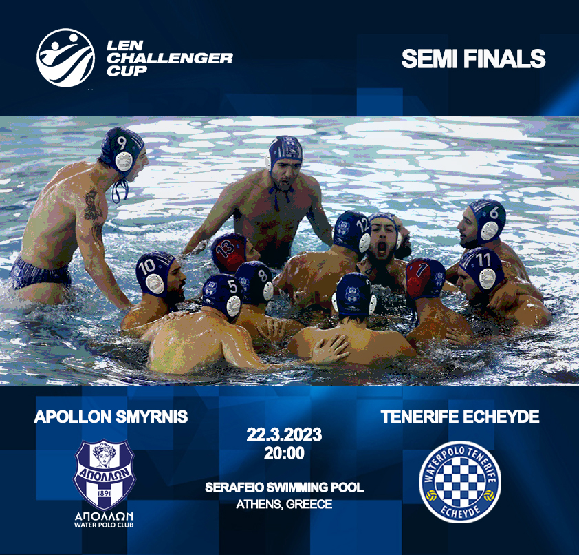 «Ο Απόλλων Σμύρνης έχει ξανά… ραντεβού με την ιστορία! Την Τετάρτη 22 Μαρτίου στις 20:00 υποδέχεται στο Σεράφειο κολυμβητήριο την Τενερίφη Εντσέιντε στον 2ο Ημιτελικό του Challenger Cup!