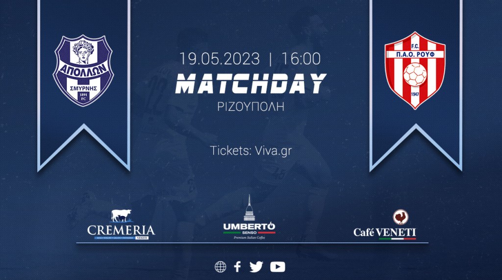 «Τον ΠΑΟ Ρουφ υποδέχεται την Παρασκευή (19/5) ο Απόλλων Σμύρνης σε αγώνα στο πλαίσιο της 26ης αγωνιστικής ημέρας του πρωταθλήματος της Bettson Super League 2.