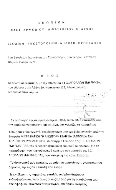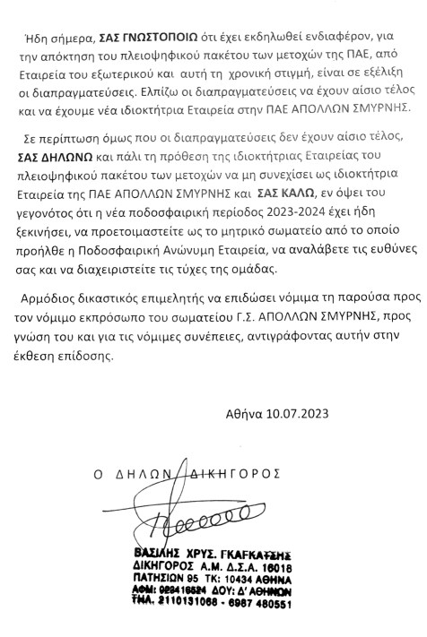 Η ΠΑΕ Απόλλων σύμφωνα με επιστολή προς τον ΓΣ Απόλλων που δημοσίευσε ο ΓΣ, ισχυρίζεται ότι υπάρχει ενδιαφέρον από εταιρία του εξωτερικού για τις μετοχές της ποδοσφαιρικής ομάδας, αλλά ταυτόχρονα αναφέρει ότι και σε περίπτωση αποτυχίας των διαπραγματεύσεων να είναι έτοιμος ο ΓΣ Απόλλων να αναλάβει τις τύχες της ομάδας.
