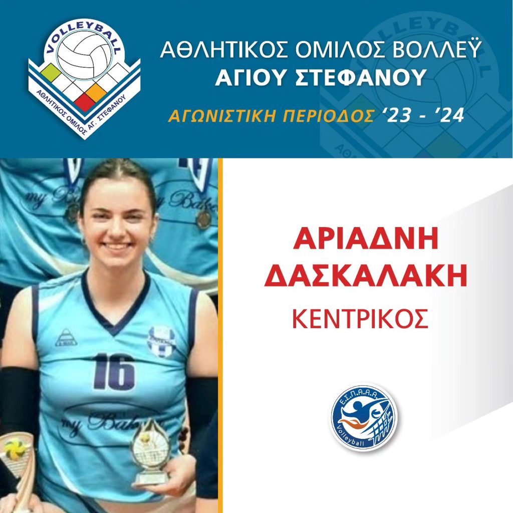 «Η Διοίκηση του ΑΟΑΣ ανακοινώνει τη συνεργασία της με την Αριάδνη Δασκαλάκη στη θέση της Κεντρικής για τη σεζόν 23/24. Η εμπειρία της θα βοηθήσει πολύ την ομάδα μας. Η Αριάδνη δήλωσε :