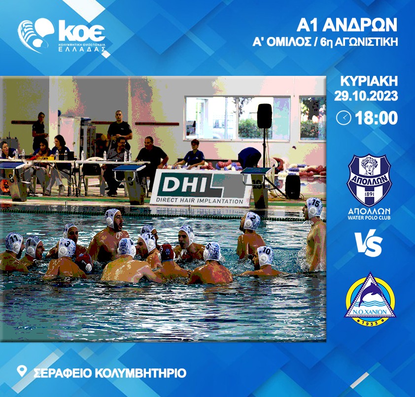 «Τον ΝΟ Χανίων, στο πλαίσιο της 6ης αγωνιστικής της Α1 Υδατοσφαίρισης των Ανδρών, υποδέχεται την προσεχή Κυριακή (29/10) στις 18:00 στο Σεράφειο ο ΓΣ Απόλλων Σμύρνης.