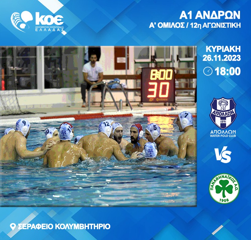 «Απαιτητικού προγράμματος συνέχεια για τον Απόλλωνα Σμύρνης, που υποδέχεται αύριο (26/11) στις 18:00 στο Σεράφειο τον Παναθηναϊκό για την 12η αγωνιστική της Α1 Υδατοσφαίρισης των Ανδρών.