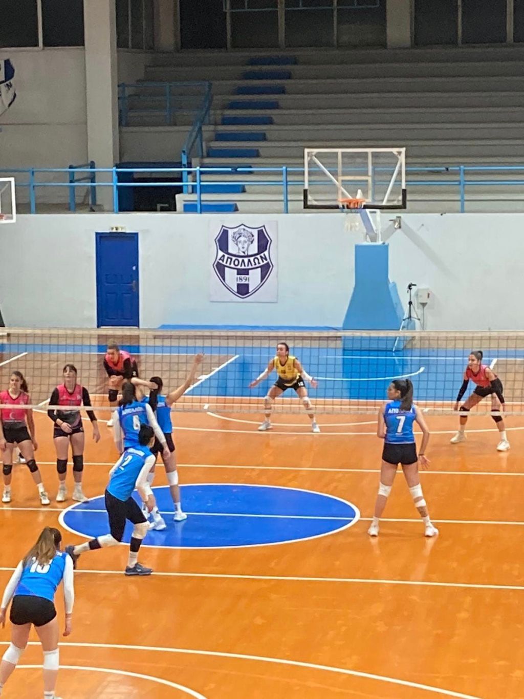 Ο Απόλλωνας πήρε το πρώτο σετ με 25-23, για να απαντήσουν οι φιλοξενούμενοι παίρνοντας τα επόμενα δύο με 22-25 και 24-26.