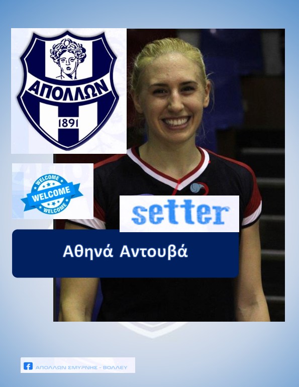«Ο ΓΣ ΑΠΟΛΛΩΝ ΣΜΥΡΝΗΣ ανακοινώνει την συνεργασία του με την αθλήτρια ΑΘΗΝΑ ΑΝΤΟΥΒΑ που θα αγωνίζεται ως πασαδόρος στην ομάδα μας.