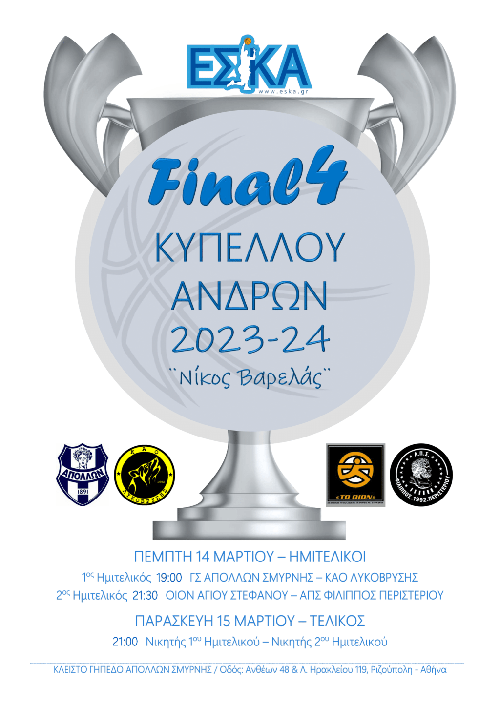 Υπενθυμίζουμε ο Απόλλωνας θα αντιμετωπίσει στα ημιτελικά τον ΚΑΟ Λυκόβρυσης, ενώ ο άλλος ημιτελικός είναι ανάμεσα του Οίον Αγίου Στεφάνου και του ΑΠΣ Φιλίππου.