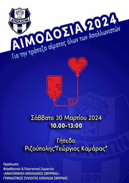 Ο ΓΣ Απόλλων ανακοίνωσε την ακύρωση της αιμοδοσίας που θα πραγματοποιούταν 30 Μαρτιού στην Ριζούπολη.