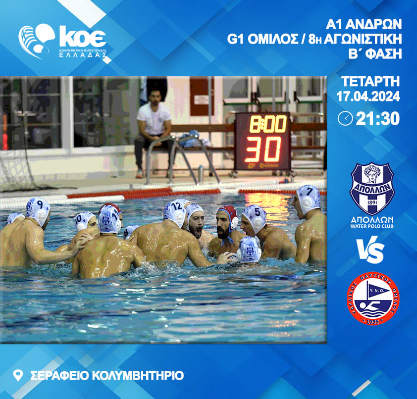Θυμίζουμε ότι στον πρώτο γύρο της Β’ Φάσης ο Απόλλων Σμύρνης, που έχει 46 βαθμούς, είχε επικρατήσει στο κολυμβητήριο της Γλυφάδας με 13-8 του Υδραϊκού, ο οποίος είναι 8ος με 23 βαθμούς.