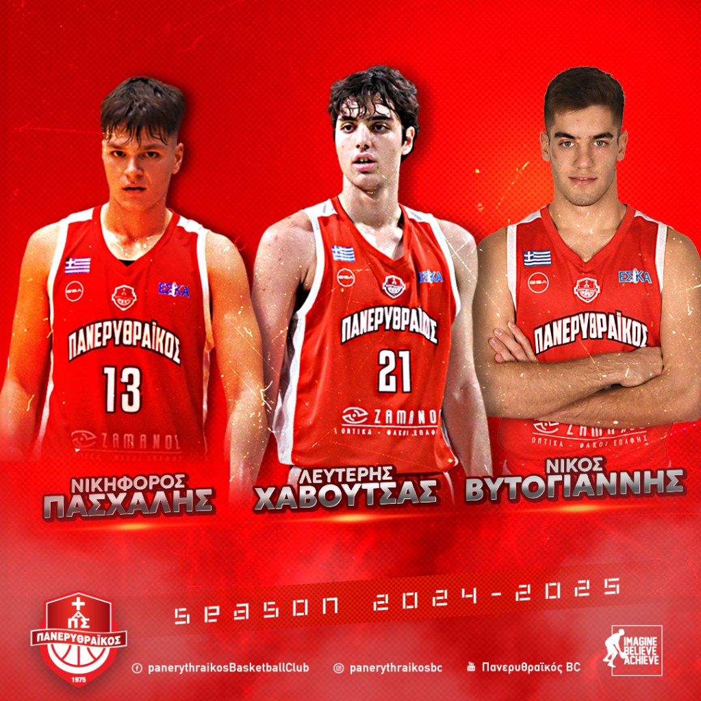 «Η διοίκηση του Πανερυθραϊκού ΑΣ ανακοινώνει την παραχώρηση των αθλητών του, Νίκου Βυτογιάννη, Νικηφόρου Πασχάλη και Λευτέρη Χαβουτσά, στον Απόλλωνα Σμύρνης με υποσχετική για τη σεζόν 2024-2025.