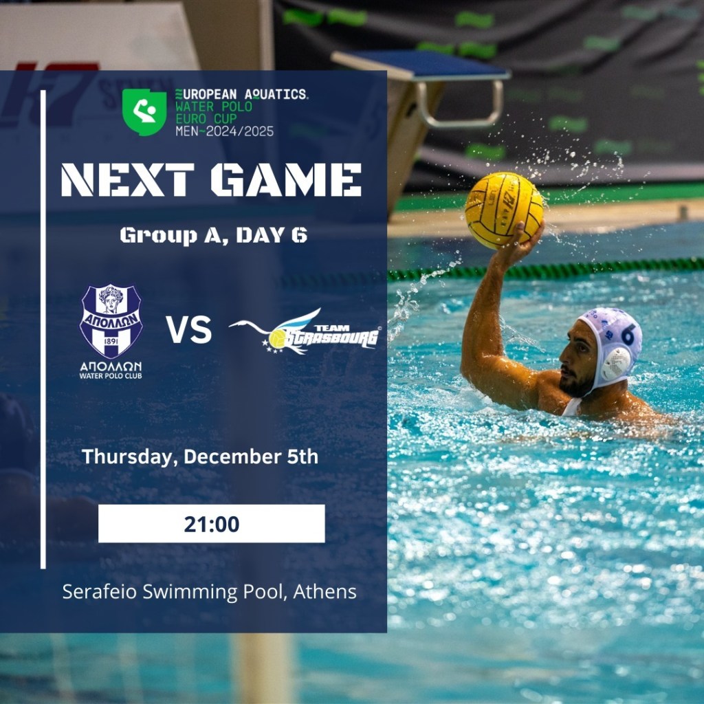 «Στη μεγάλη ευρωπαϊκή… μάχη με τη Στρασμπούρ στο Σεράφειο την προσεχή Πέμπη (5/12) στις 21:00 για την 6η και τελευταία αγωνιστική της φάσης των ομίλων του Euro Cup εστιάζει αποκλειστικά από χθες ο ΓΣ Απόλλων Σμύρνης!
