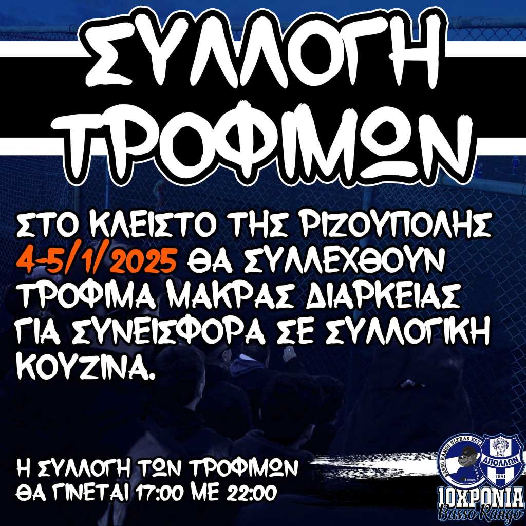 Σε αυτούς τους αγώνες όπως είναι φυσικό, θα είμαστε εκεί στο πλευρό της ομάδας. Με αφορμή αυτή τη γιορτή, θα συλλεχθούν τρόφιμα μακράς διαρκείας, τα οποία και θα παραδοθούν μέσα στην επόμενη εβδομάδα σε συλλογική κουζίνα για τους συνανθρώπους μας που δίνουν την δική τους μάχη για την επιβίωση, και τα φέρνουν δύσκολα πέρα αυτούς τους σκληρούς καιρούς που ζούμε.