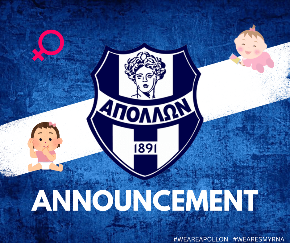 «Το τμήμα ποδοσφαίρου του Απόλλωνα Σμύρνης καλωσορίζει το νεότερο μέλος του! Ο Σάββας Ηλιάδης και η σύζυγός του έφεραν στον κόσμο ένα υγιέστατο κοριτσάκι, γεμίζοντας την οικογένειά τους και την οικογένεια του Απόλλωνα με χαρά! Να σας ζήσει!»