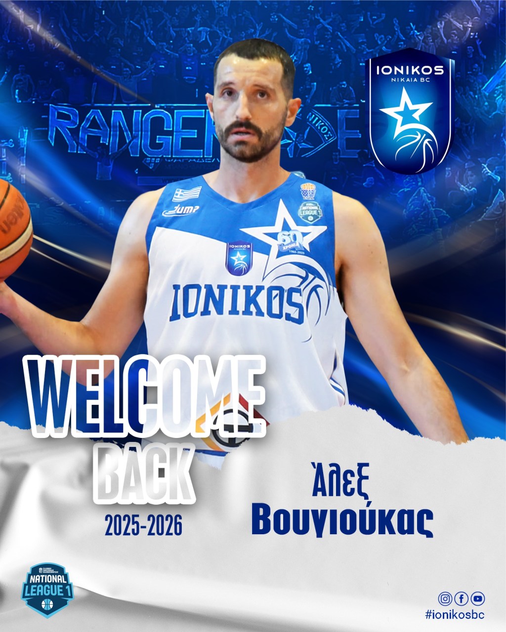 Ο Ιωνικός Νίκαιας B.C. ανακοινώνει με ιδιαίτερη χαρά την έναρξη της συνεργασίας του με τον Άλεξ Βουγιούκα για την αγωνιστική περίοδο 2025–2026.