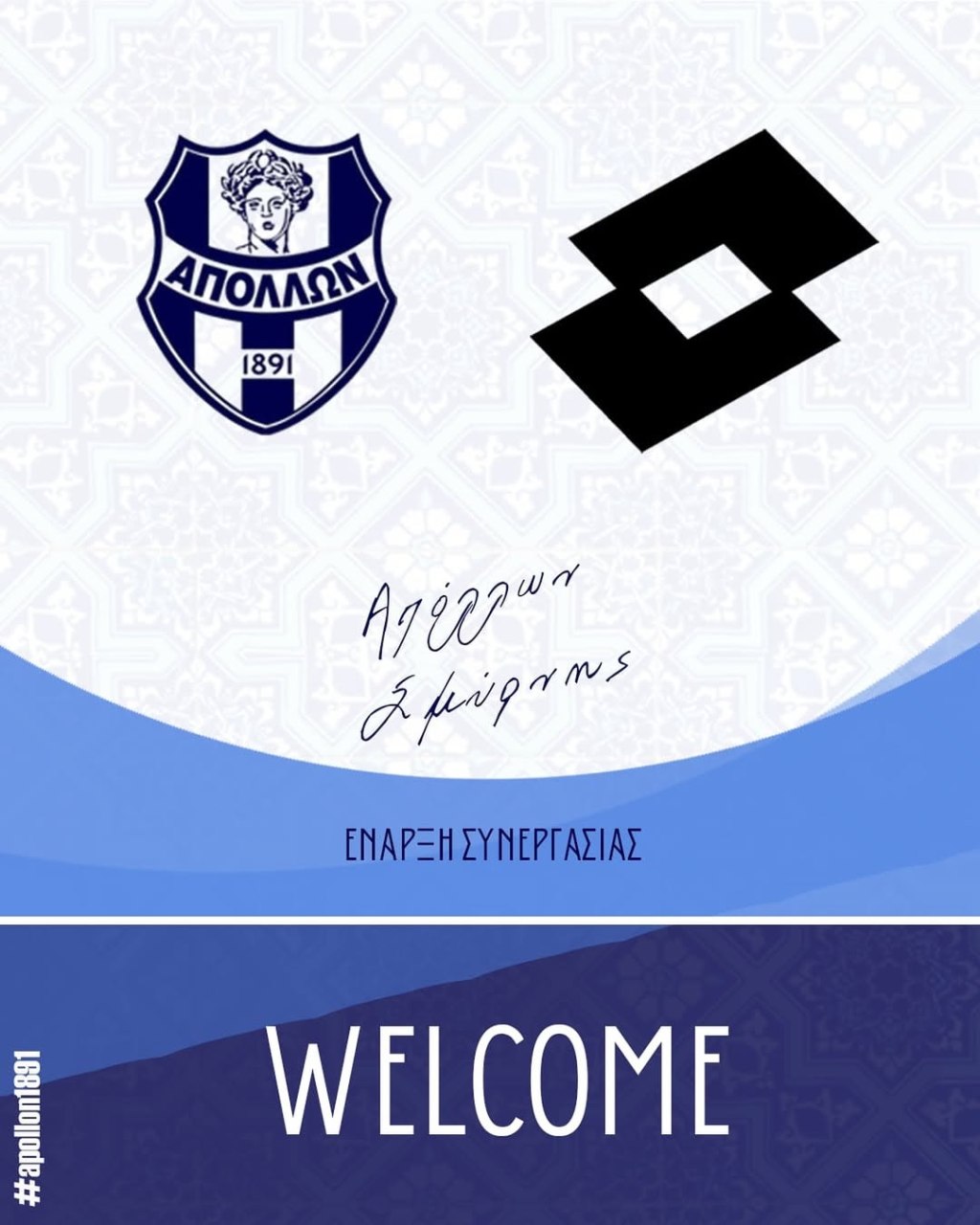 «Η ακαδημία του ΓΣ ΑΠΟΛΛΩΝ ΣΜΥΡΝΗΣ, ανακοινώνει την έναρξη συνεργασίας με την εταιρεία αθλητικής ένδυσης Lotto, επίσημο προμηθευτή ιματισμού της ακαδημίας του συλλόγου μας.