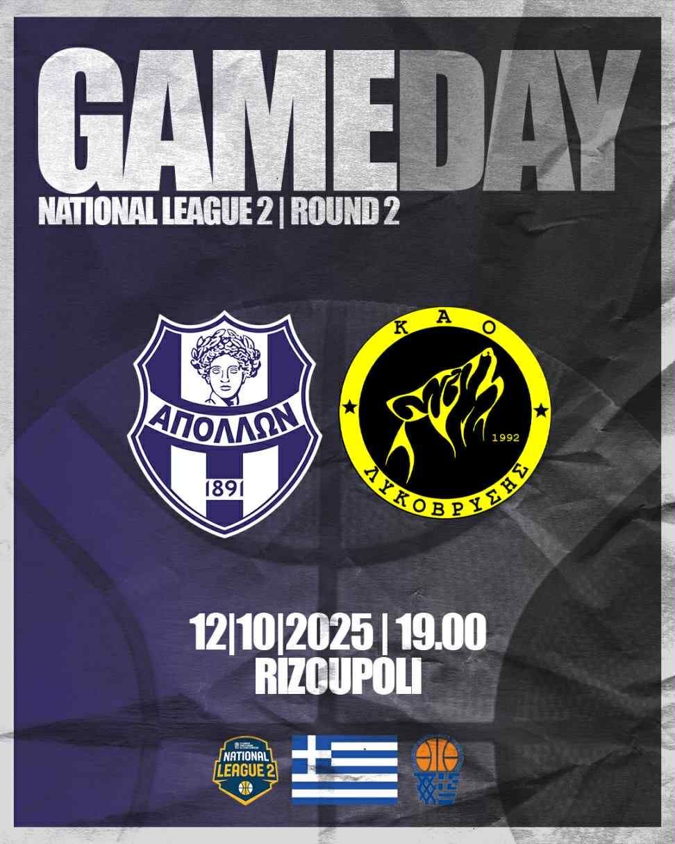 «Ο Γ. Σ. Απόλλων Σμύρνης 1891 ανακοινώνει τη διεξαγωγή της αναμέτρησης για τη 2η αγωνιστική της National League 2.