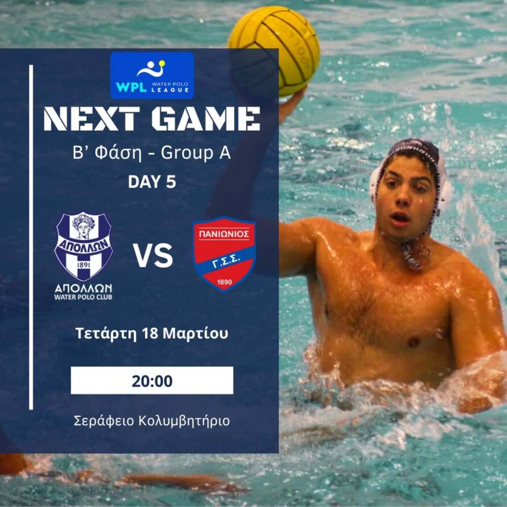 «Όπως και πριν τον 2ο προκριματικό όμιλο του Conference Cup έτσι και τώρα ο ΓΣ Απόλλων Σμύρνης θα αντιμετωπίσει δυο μέρες πριν τον 2ο Προημιτελικό Όμιλο της εν λόγω ευρωπαϊκής διοργάνωσης, τον οποίο θα φιλοξενήσει η ομάδα μας στο Σεράφειο (20-22 Μαρτίου), τον Πανιώνιο για τη Β’ Φάση της Water Polo League.